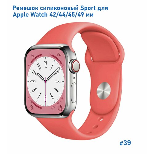 Ремешок силиконовый Sport для Apple Watch 42/44/45/49 мм, на кнопке, розово-красный (39)