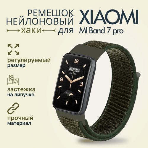 Ремешок для Xiaomi Mi Band 7 Pro , нейлоновый, на липучке, темный хаки
