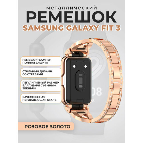 Металлический ремешок с бампером для Samsung Galaxy Fit 3, со стразами, розовое золото