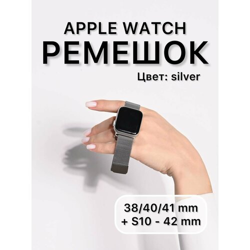 Металлический ремешок для Apple Watch 38,40,41, S10 42 мм, миланское плетение, серебристый