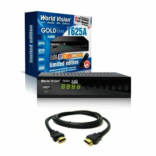 Цифровая DVB-T2 приставка World Vision T625A (DVB-T2+DVB-C, обучаемый ПДУ) + Кабель HDMI 1.5 м медный