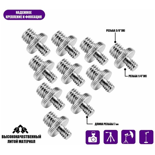 Резьбовой переходник 1/4"(M) - 3/8"(M) для штативов и микрофонных стоек, 10 шт