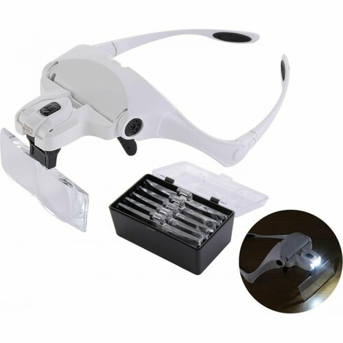 Лупа на голову с подсветкой / Лупа налобная 3.5х с LED фонарем / Очки - лупа