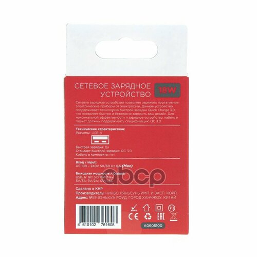 Сетевое Зарядное Устройство 18W Usb-A (Qc3.0) Arnezi A0605100 ARNEZI арт. A0605100