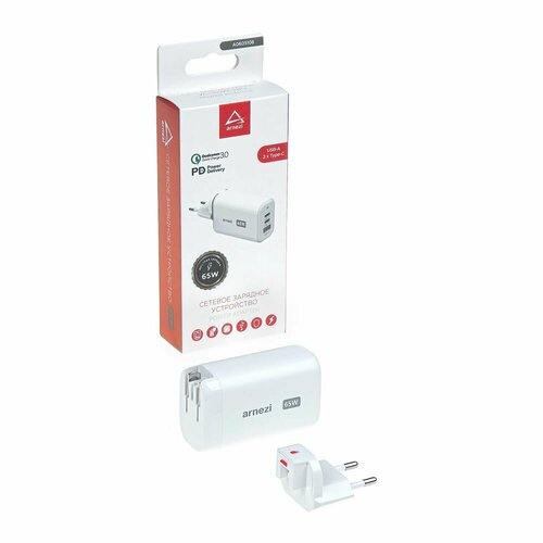 Сетевое зарядное устройство GAN 65W USB-A (QC3.0), 2 x Type-C (PD3.0) ARNEZI A0605108 ARNEZI A0605108