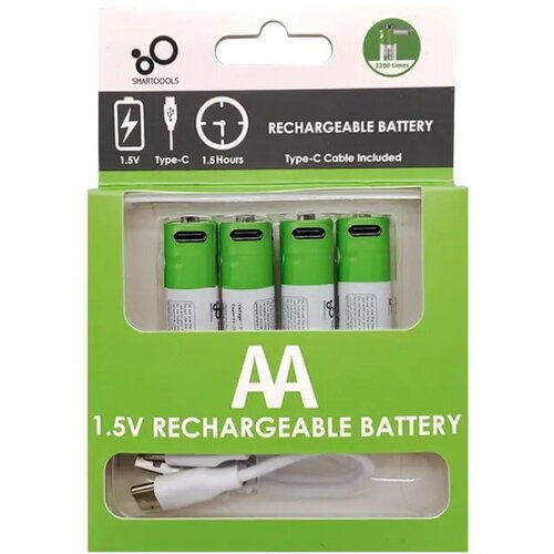 Аккумуляторные батарейки AA 1.5V 2600 mWh с USB type-C кабелем, 4 штуки
