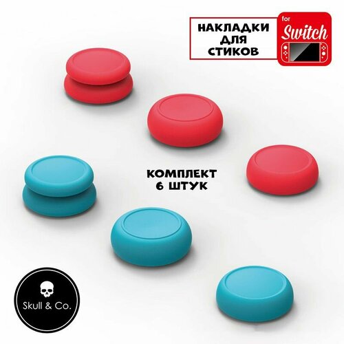 Премиум накладки насадки Skull&Co на стики Joy-Con Nintendo Switch/Oled/Lite синие с красным
