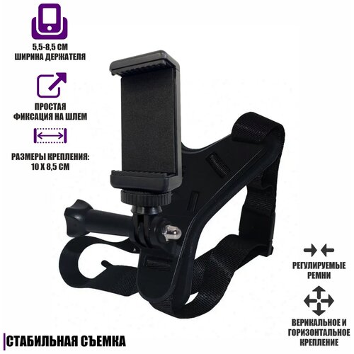 Держатель 55-85 мм для телефона или экшн камеры, крепление на шлем с винтом и гайкой