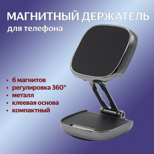 Держатель для телефона Магнитный в автомобиль в машину, сталь, чёрный, серый