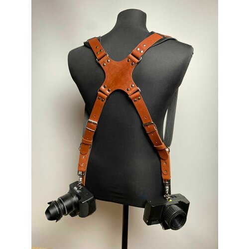 Разгрузка для фотографа на две камеры коричневая с широкими плечевыми ремнями