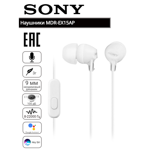 Наушники с микрофоном Sony MDR-EX15APW,. Оригинал.