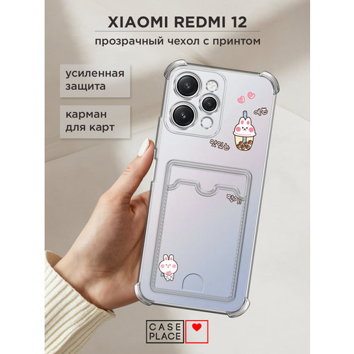 Чехол на Xiaomi Redmi 12 (Сяоми Редми 12) с картой и принтом Bunny bubble tea