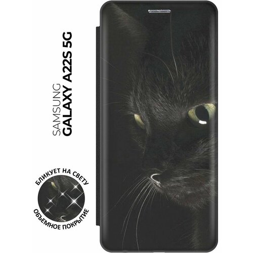 Чехол-книжка Черный кот на Samsung Galaxy A22s 5G / Самсунг А22с с эффектом блика черный