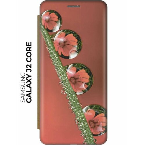 Чехол-книжка Четыре капли на Samsung Galaxy J2 Core / Самсунг Джей 2 Кор золотой