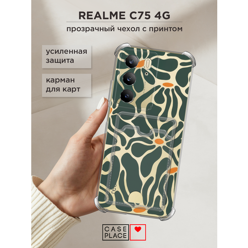 Чехол на Realme C75 4G (Реалми C75 4G) с картой и принтом Волнистые цветы
