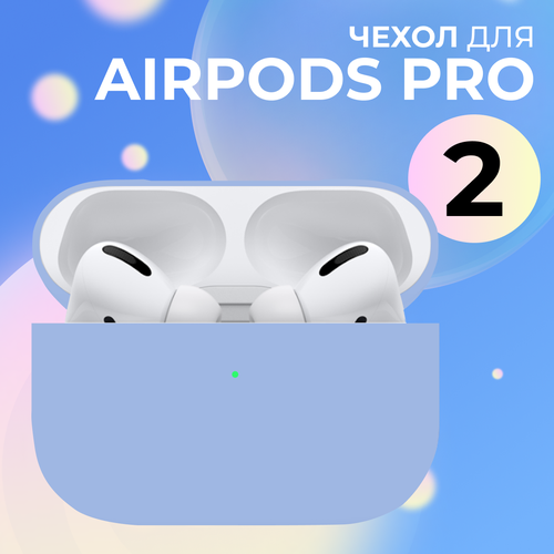 Ультратонкий чехол для Apple AirPods Pro 2 / Силиконовый кейс для беспроводных наушников Эпл Аирподс Про 2 из гибкого силикона, Светло-синий