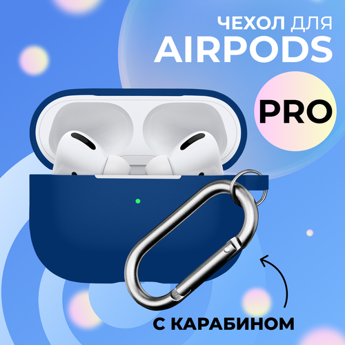 Ультратонкий чехол для Apple AirPods Pro / Силиконовый кейс с карабином для беспроводных наушников Эпл Аирподс Про из гибкого силикона, Темно-синий