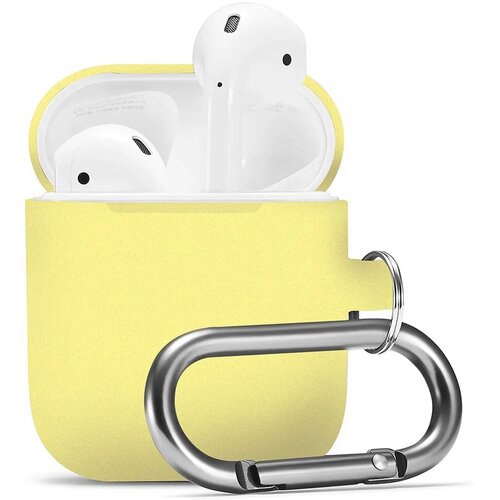 Силиконовый чехол на беспроводные наушники Apple AirPods 1 и 2 с карабином / Противоударный чехол для кейса на Эпл Аирподс 1 и 2 / Желтый