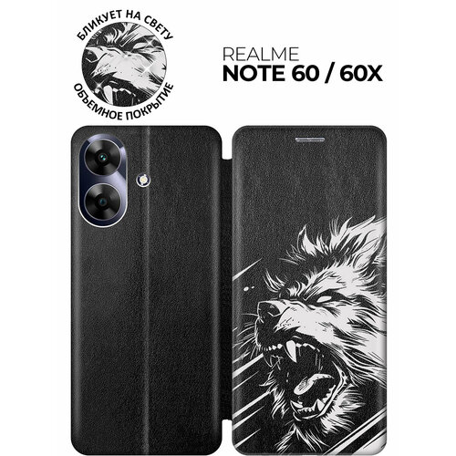 Чехол-книжка на Realme Note 60 / 60x с принтом "Рев оборотня" черный