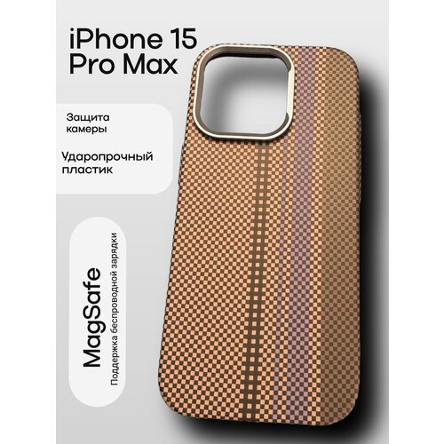 Чехол на IPhone 15 Pro Max с поддержкой беспроводной зарядки под карбон из ударопрочного пластика с защитой камеры