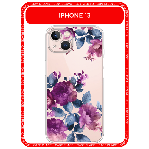 Чехол на Apple iPhone 13 / Айфон 13 с принтом Purple Blossoms, прозрачный