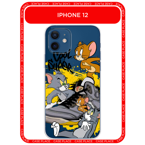 Чехол на Apple iPhone 12/12 Pro / Айфон 12/12 Про с принтом Том, Джерри и кроссовок, прозрачный