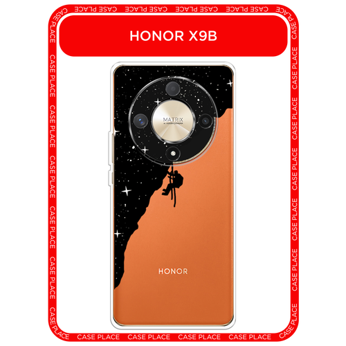 Чехол на Honor X9B / Хонор X9B с принтом Скалолаз в космосе, прозрачный