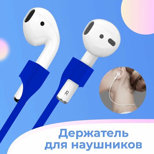 Силиконовый шнур держатель для наушников Apple Airpods 1 и 2 / Магнитное крепление на шнурке для беспроводных наушников Эпл Аирподс 1 и 2 / Синий
