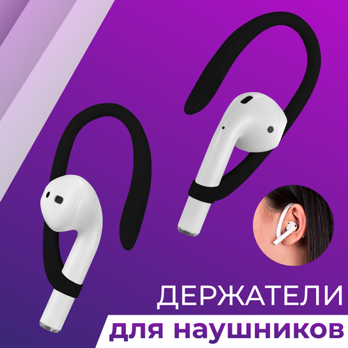 Силиконовый держатель для беспроводных наушников Apple AirPods 1 и 2 / Черный фиксатор с креплением на уши для Эпл АирПодс / Защита от потери