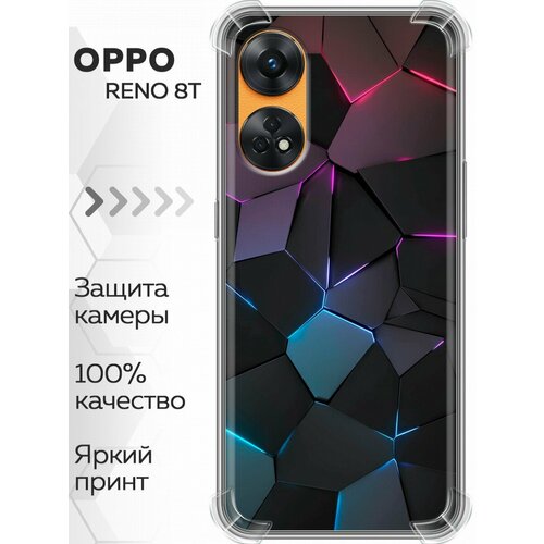 Дизайнерский силиконовый с усиленными углами чехол для Оппо Рено8 Т / OPPO Reno8 T Геометрия неона