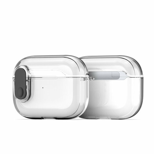 Прозрачный чехол с кнопкой черного цвета от Dux Ducis для наушников AirPods Pro 2, серия PECL Series Case, в комплекте с карабином