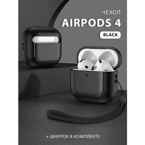 Чехол для наушников AirPods 4 (2024) дизайн под кожу и металл со шнурком, экокожа