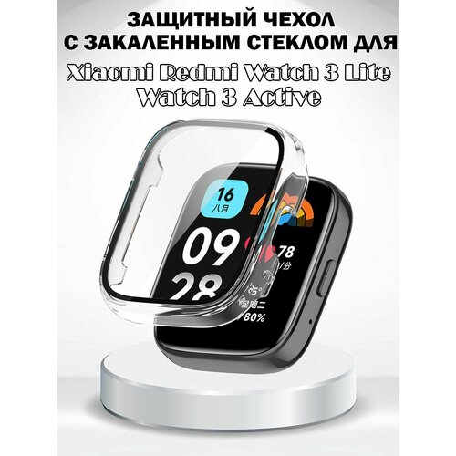 Защитный жесткий чехол с закаленным стеклом для Xiaomi Redmi Watch 3 Lite / Watch 3 Active - прозрачный