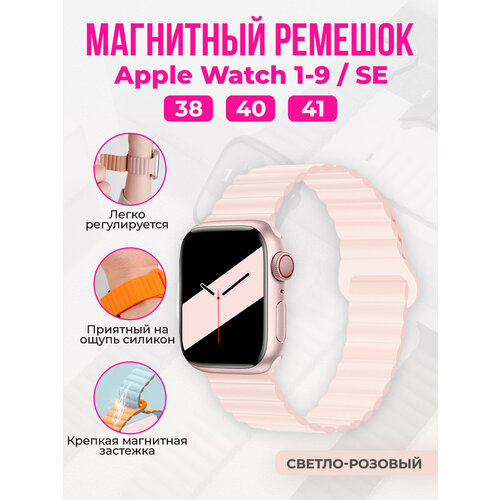 Магнитный силиконовый ремешок для Apple Watch 1-9 / SE (38/40/41 мм), светло-розовый