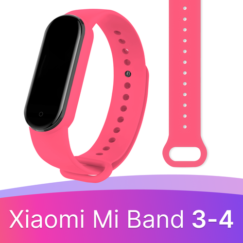 Силиконовый ремешок для смарт часов Xiaomi Mi Band 3 и 4 / Спортивный сменный браслет на фитнес трекер Сяоми Ми Бэнд 3 и 4 / Ярко-розовый