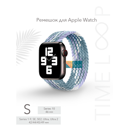 Ремешок тканевый плетеный для Apple Watch Series 1-10 SE, SE 2 и Ultra, Ultra 2; смарт часов 42 mm 44 mm 45 mm 49 mm ( 10 серия 46 мм ); размер S (145 mm)