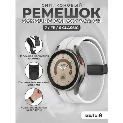 Силиконовый ремешок для Samsung Galaxy Watch 7 / FE / 6 Classic, с черной магнитной застежкой