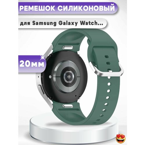 Силиконовый ремешок для смарт-часов Samsung Galaxy Watch 4, 5, 6, 7, FE - темно-зеленый