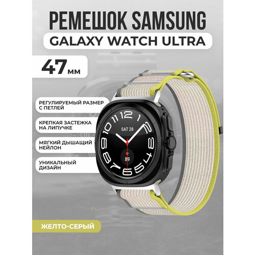 Нейлоновый ремешок на липучке для Samsung Galaxy Watch Ultra, 47 мм, желто-серый