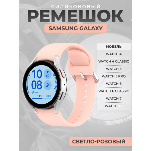 Силиконовый ремешок для Samsung Galaxy Watch 7 / FE / 6 Classic, с серебристой застежкой, светло-розовый