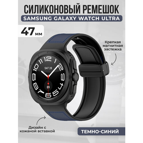 Силиконовый ремешок с кожаной вставкой и магнитной застежкой для Samsung Galaxy Watch Ultra, 47 мм, темно-синий