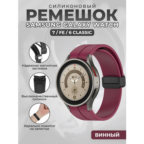 Силиконовый ремешок для Samsung Galaxy Watch 7 / FE / 6 Classic, с черной магнитной застежкой, винный