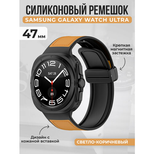 Силиконовый ремешок с кожаной вставкой и магнитной застежкой для Samsung Galaxy Watch Ultra, 47 мм, светло-коричневый