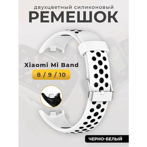 Двухцветный силиконовый ремешок для Mi Band 8/ 9, бело-черный