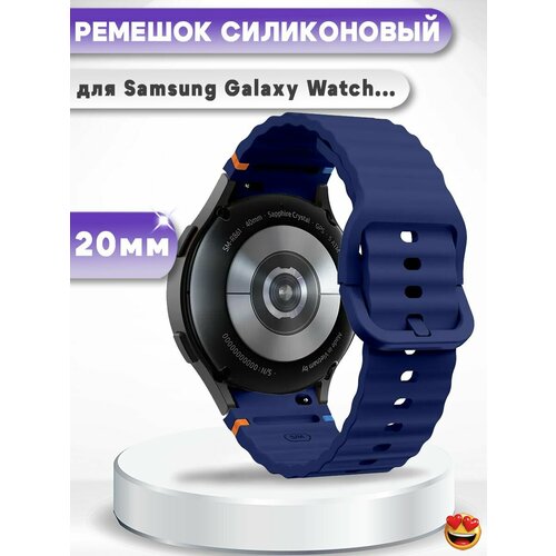 Силиконовый ремешок для смарт-часов Samsung Galaxy Watch FE, 7, 6, 5, 4 темно-синий