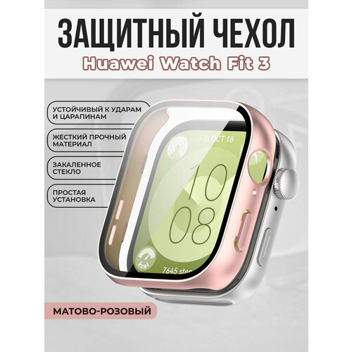 Жесткий чехол с защитой экрана для Huawei Watch Fit 3, закаленное стекло, матово-розовый