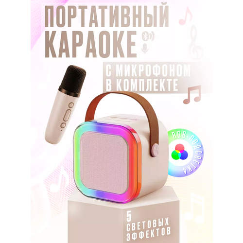 Портативная блютуз мини колонка караоке с 1-м микрофоном, BLUETOOTH, музыкальная переносная колонка, караоке система для дома и в путешествиях, бежевый