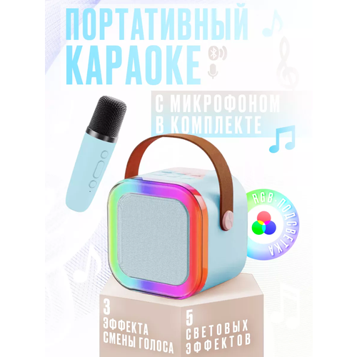 Портативная блютуз мини колонка караоке с 1-м микрофоном, BLUETOOTH, музыкальная переносная колонка, караоке система для дома и в путешествиях, голубой