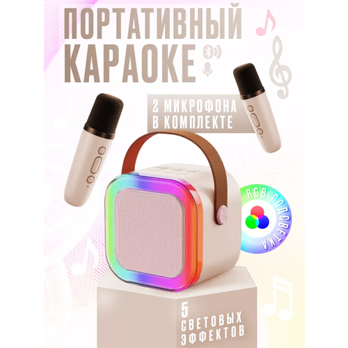 Портативная блютуз мини колонка караоке с 2-мя микрофонами бежевый, BLUETOOTH, музыкальная переносная колонка, караоке система для дома и в путешествиях