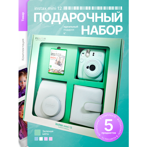 Супер большой Набор c Фотоаппаратом моментальной печати Fujifilm Instax Mini 12 Зеленый, 10 Предметов в Наборе